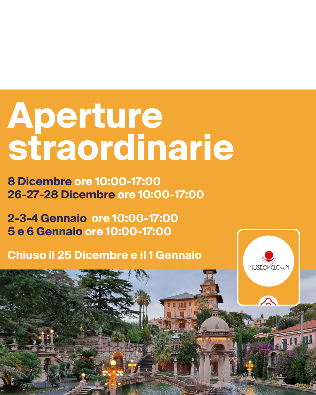 Villa Grock resterà chiusa il 25 dicembre e il 1° gennaio