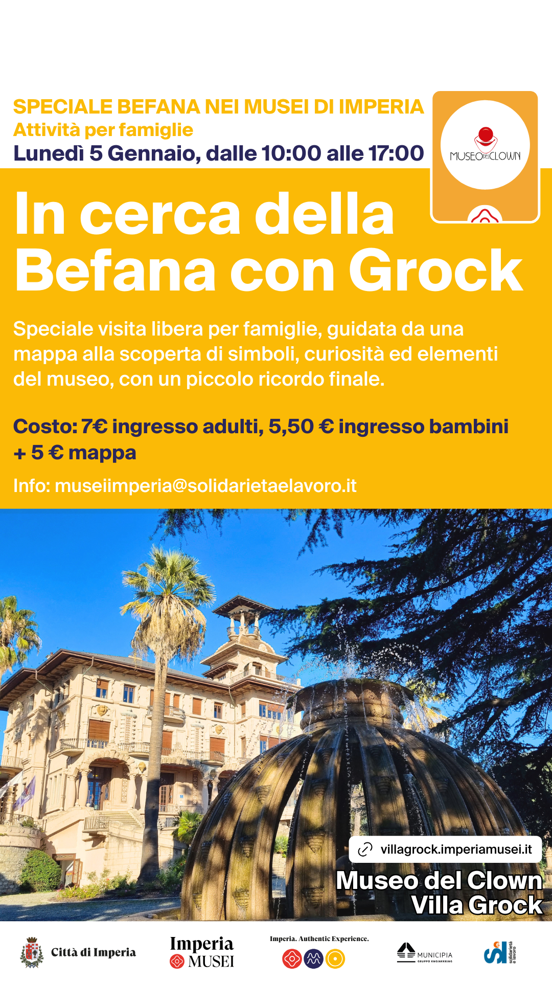 Lunedì 5 gennaio, dalle 10:00 alle 17:00, Villa Grock ospiterà "In cerca della Befana con Grock" una speciale visita libera dedicata alle famiglie.