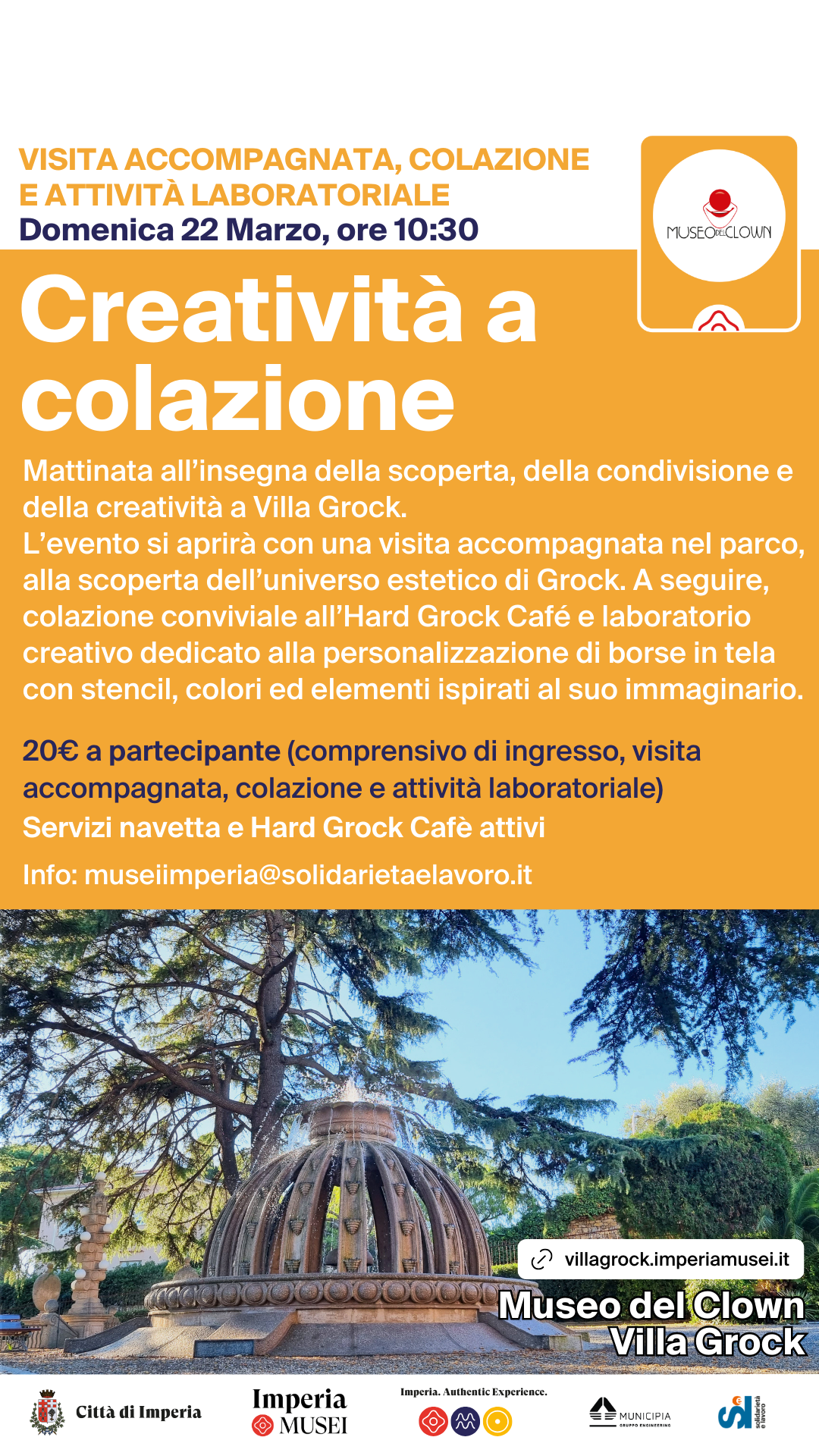 Domenica 22 Marzo alle ore 10:30, Villa Grock ospiterà "Creatività a colazione" una speciale attività per grandi e piccini all’insegna della scoperta, della condivisione e della creatività, con visita accompagnata nel parco della Villa, colazione conviviale e laboratorio creativo.