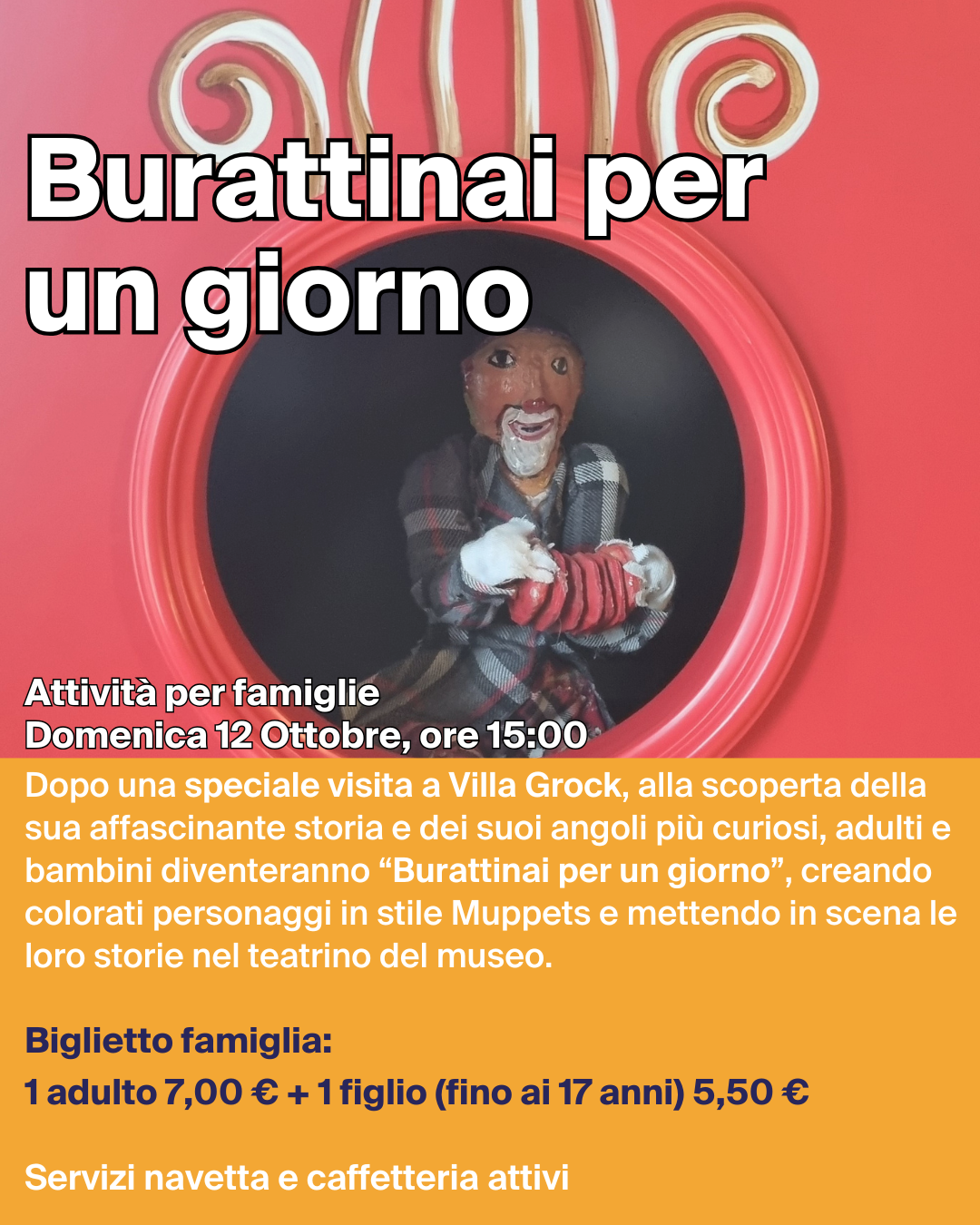 In occasione della Giornata Nazionale delle Famiglie al Museo, Domenica 12 Ottobre alle ore 15:00, Villa Grock ospiterà “Burattinai per un giorno”, un’attività pensata per tutta la famiglia, in cui adulti e bambini potranno dare libero sfogo alla creatività.