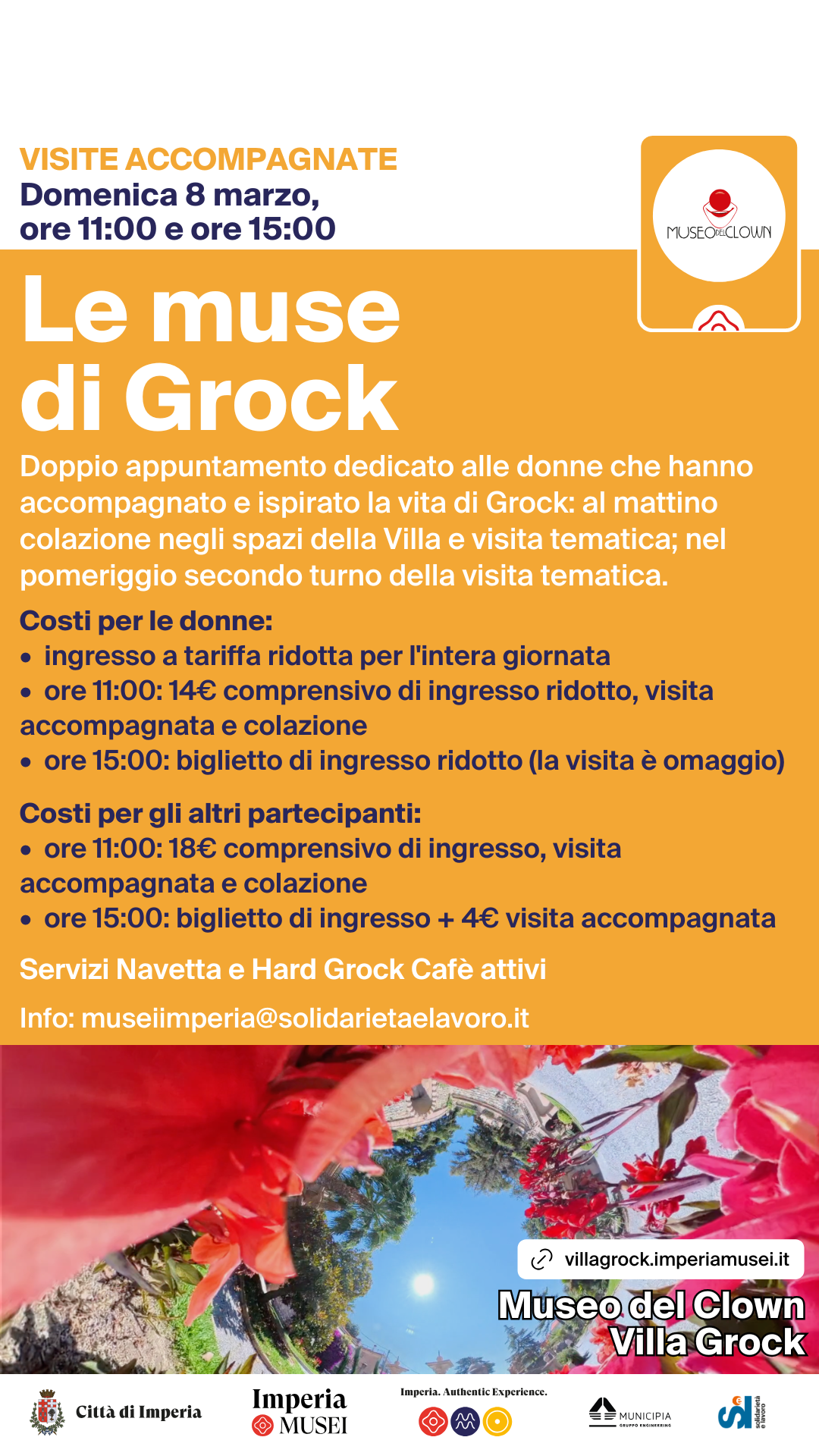 Domenica 8 marzo, alle ore 11:00 e alle ore 15:00, in occasione della Festa della Donna, Villa Grock propone un doppio appuntamento dedicato alle figure femminili che hanno accompagnato e ispirato la vita di Grock.
