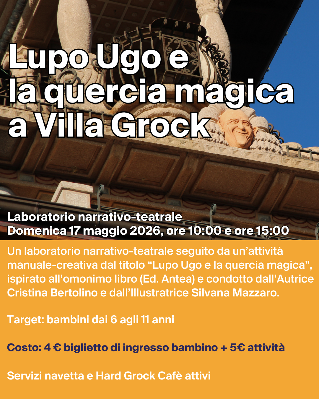 Un’esperienza animata e interattiva in cui i bambini diventano protagonisti, guidati dal personaggio di Lupo Ugo in un percorso di scoperta e immaginazione, tra magia, storie in trasformazione e le suggestive atmosfere di Villa Grock.